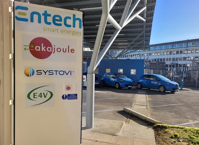 Enedis a sélectionné Entech pour installer 30 kWc de photovoltaïque ainsi qu’un conteneur de stockage batteries dans le centre-ville de Nantes. Ce démonstrateur permet de produire de l’électricité renouvelable, de la stocker et de la consommer sur place pour recharger les véhicules électriques.